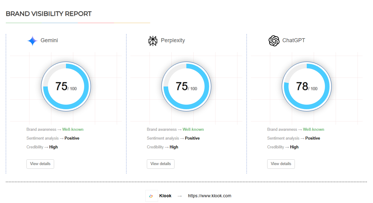 以上,我们可以简单得出,为什么klook的GEO表现会比trip更好, 一是品牌力更强,二是博客文章更多,三是品牌声音更积极。