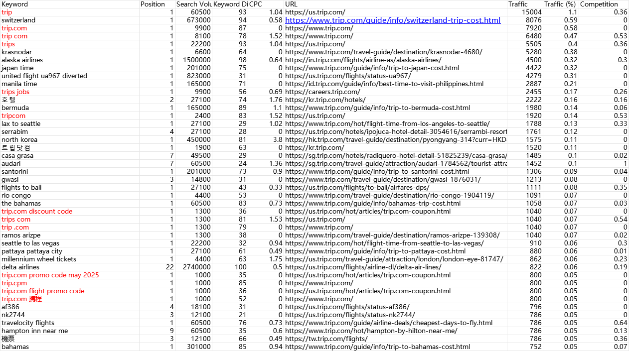 1. 先看一下这两个品牌的自然流量对比 (谷歌ads的月平均搜索量数据 klook:1500000;trip:1220000)
